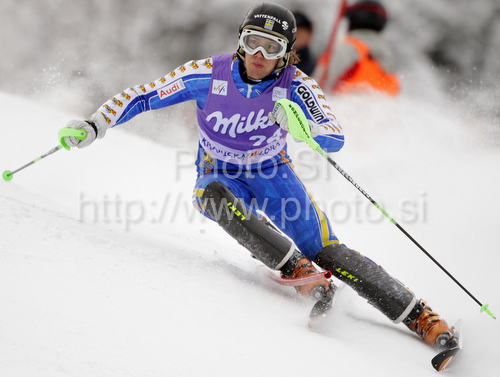 : Axel Baeck of Sweden skiing in first run of Men slalom race of Audi FIS alpine skiing World Cup in Kranjska Gora, Slovenia. Slalom race of Men Audi FIS Alpine skiing World Cup 2009-10, was held on Sunday in Kranjska Gora, Slovenia, on 31st of January 2010.