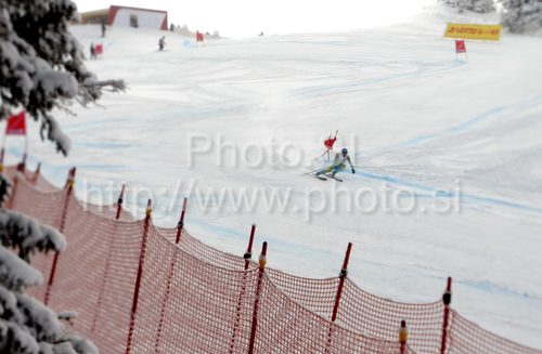 : Andrej Jerman of Slovenia skiing in training of Men downhill race of Audi FIS alpine skiing World Cup in Garmisch-Partenkirchen, Germany. Training for downhill race of Men Audi FIS Alpine skiing World Cup 2009-10, was held on Tuesday in Garmisch-Partenkirchen, Germany, on 9th of March 2010.