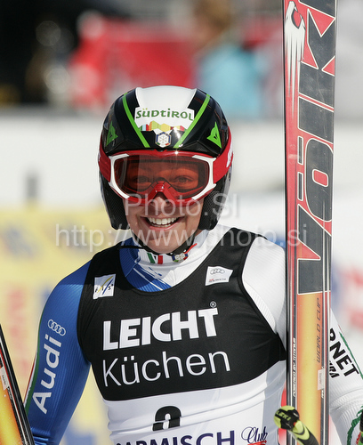 : Johanna Schnarf of Italy reacts in finish of Women downhill race of Audi FIS alpine skiing World Cup in Garmisch-Partenkirchen, Germany. Training for downhill race of Men Audi FIS Alpine skiing World Cup 2009-10, was held on Tuesday in Garmisch-Partenkirchen, Germany, on 9th of March 2010.