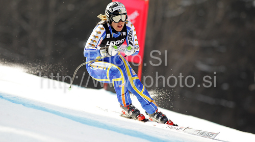 : Third placed Anja Paerson of Sweden skiing in last Women downhill race of Audi FIS alpine skiing World Cup, which was held on Kandahar downhill course in Garmisch-Partenkirchen, Germany. Last downhill race of Women Audi FIS Alpine skiing World Cup 2009-10, was held on Wednesday, 10th of March 2010 in Garmisch-Partenkirchen, Germany.