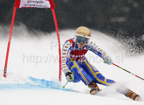 : Sixth placed after first run Maria Pietilae-Holmner of Sweden skiing in first run of last Women Giant slalom race of Audi FIS alpine skiing World Cup, which was held on Kandahar course in Garmisch-Partenkirchen, Germany. Last Giant slalom race of Women Audi FIS Alpine skiing World Cup 2009-10, was held on Thursday, 11th of March 2010 in Garmisch-Partenkirchen, Germany.