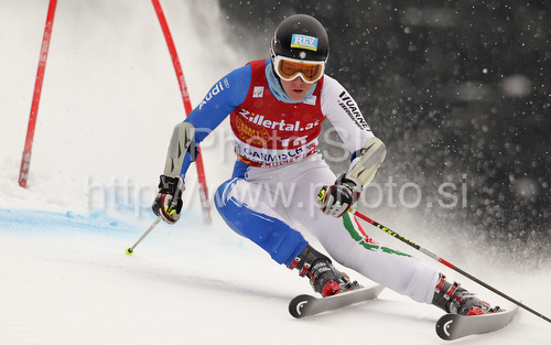 : Giulia Gianesini of Italy skiing in first run of last Women Giant slalom race of Audi FIS alpine skiing World Cup, which was held on Kandahar course in Garmisch-Partenkirchen, Germany. Last Giant slalom race of Women Audi FIS Alpine skiing World Cup 2009-10, was held on Thursday, 11th of March 2010 in Garmisch-Partenkirchen, Germany.