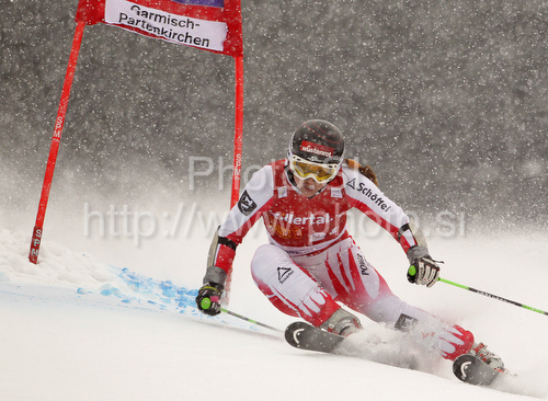 Garmisch-Partenkirchen ,Germany - 11.03.2010 : Third after first run Elisabeth Goergl of Austria skiing in first run of last Women Giant slalom race of Audi FIS alpine skiing World Cup, which was held on Kandahar course in Garmisch-Partenkirchen, Germany. Last Giant slalom race of Women Audi FIS Alpine skiing World Cup 2009-10, was held on Thursday, 11th of March 2010 in Garmisch-Partenkirchen, Germany. Photo by: Primoz Jeroncic
