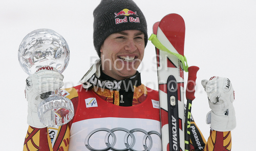 Garmisch-Partenkirchen ,Germany - 11.03.2010 : Erik Guay of Canada celebrates overall Super-G World cup victory after last Men Super-G race of Audi FIS alpine skiing World Cup, which was held on Kandahar course in Garmisch-Partenkirchen, Germany. Last Super-G race of Men Audi FIS Alpine skiing World Cup 2009-10, was held on Thursday, 11th of March 2010 in Garmisch-Partenkirchen, Germany. Photo by: Leena Jeroncic