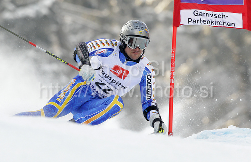 : Markus Larsson of Sweden skiing in first run of last Men Giant slalom race of Audi FIS alpine skiing World Cup, which was held on Kandahar course in Garmisch-Partenkirchen, Germany. Last Giant slalom race of Men Audi FIS Alpine skiing World Cup 2009-10, was held on Friday, 12th of March 2010 in Garmisch-Partenkirchen, Germany.