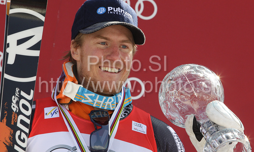 : Winner Ted Ligety of USA celebrates overall Giant slalom World cup victory after last Men giant slalom race of Audi FIS alpine skiing World Cup, which was held on Kandahar course in Garmisch-Partenkirchen, Germany. Last giant slalom race of Men Audi FIS Alpine skiing World Cup 2009-10, was held on Friday, 12th of March 2010 in Garmisch-Partenkirchen, Germany.