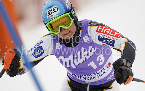 Garmisch-Partenkirchen ,Germany - 13.03.2010 : Tanja Poutiainen of Finland skiing in first run of last Women slalom race of Audi FIS alpine skiing World Cup, which was held on Gudiberg course in Garmisch-Partenkirchen, Germany. Last slalom race of Women Audi FIS Alpine skiing World Cup 2009-10, was held on Saturday, 13th of March 2010 in Garmisch-Partenkirchen, Germany. Photo by: Primoz Jeroncic
