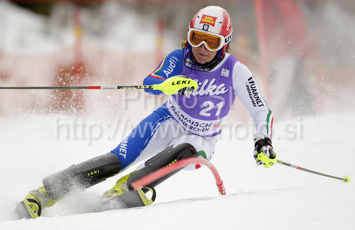 Garmisch-Partenkirchen ,Germany - 13.03.2010 : Tenth placed after first run Nicole Gius of Italy skiing in first run of last Women slalom race of Audi FIS alpine skiing World Cup, which was held on Gudiberg course in Garmisch-Partenkirchen, Germany. Last slalom race of Women Audi FIS Alpine skiing World Cup 2009-10, was held on Saturday, 13th of March 2010 in Garmisch-Partenkirchen, Germany. Photo by: Primoz Jeroncic