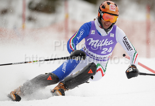 : Chiara Costazza of Italy skiing in first run of last Women slalom race of Audi FIS alpine skiing World Cup, which was held on Gudiberg course in Garmisch-Partenkirchen, Germany. Last slalom race of Women Audi FIS Alpine skiing World Cup 2009-10, was held on Saturday, 13th of March 2010 in Garmisch-Partenkirchen, Germany.