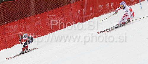 Garmisch-Partenkirchen ,Germany - 14.03.2010 : Tea Palic of Croatia (L) and Michaela Kirchgasser of Austria (R) skiing in team race of Audi FIS alpine skiing World Cup, which was held on Kandahar course in Garmisch-Partenkirchen, Germany. Team race of Audi FIS Alpine skiing World Cup 2009-10, was held on Sunday, 14th of March 2010 in Garmisch-Partenkirchen, Germany. Photo by: Primoz Jeroncic