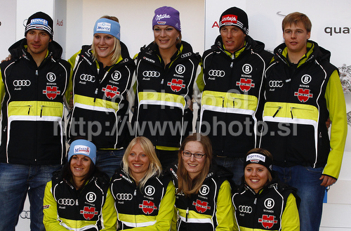 : German team during Audi Media talk event in Soelden, Austria. Audi Media talk event was held on Thursday, 21st of October 2010 in Soelden, Austria, before start of Audi FIS Alpine skiing World cup 2010-2011, which will start with women giant slalom race on Saturday, 23rd of October 2010, and will be followed by men giant slalom race day later on Rettenbach glacier above Soelden, Austria.