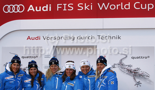: Swedish team during Audi Media talk event in Soelden, Austria. Audi Media talk event was held on Thursday, 21st of October 2010 in Soelden, Austria, before start of Audi FIS Alpine skiing World cup 2010-2011, which will start with women giant slalom race on Saturday, 23rd of October 2010, and will be followed by men giant slalom race day later on Rettenbach glacier above Soelden, Austria.