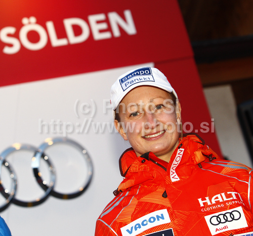 Soelden ,Austria - 21.10.2010 : Tanja Poutiainen of Finland during Audi Media talk event in Soelden, Austria. Audi Media talk event was held on Thursday, 21st of October 2010 in Soelden, Austria, before start of Audi FIS Alpine skiing World cup 2010-2011, which will start with women giant slalom race on Saturday, 23rd of October 2010, and will be followed by men giant slalom race day later on Rettenbach glacier above Soelden, Austria. Photo by: Primoz Jeroncic