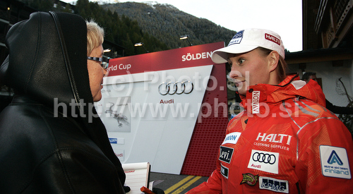 : Tanja Poutiainen of Finland during Audi Media talk event in Soelden, Austria. Audi Media talk event was held on Thursday, 21st of October 2010 in Soelden, Austria, before start of Audi FIS Alpine skiing World cup 2010-2011, which will start with women giant slalom race on Saturday, 23rd of October 2010, and will be followed by men giant slalom race day later on Rettenbach glacier above Soelden, Austria.