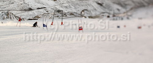 : Skiers are training on Rettenbach glacier above Soelden, Austria, for coming World cup races on Friday, 22nd of October 2010, which is just a day away. Audi FIS Alpine skiing World cup will start with women giant slalom race on Saturday, 23rd of October 2010, and will be followed by men giant slalom race day later on Rettenbach glacier above Soelden, Austria.