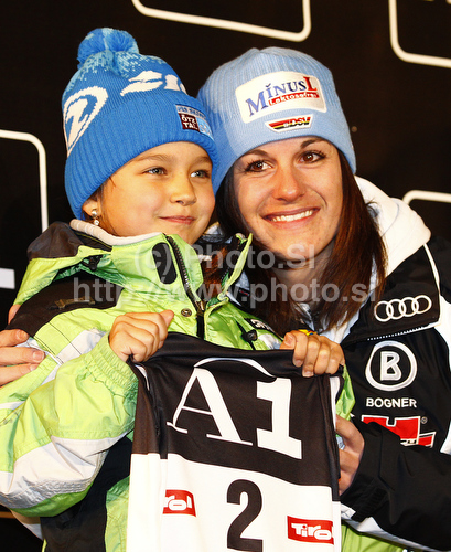: during bib draw for Audi FIS Alpine skiing giant slalom race in Soelden, Austria. Bib draw for women Audi FIS Alpine skiing giant slalom race was held in Soelden, Austria, on Friday, 22nd of October 2010.