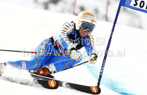 : Maria Pietilae-Holmner of Sweden skiing in first run of Women giant slalom race of Audi FIS alpine skiing World Cup in Soelden, Austria. First giant slalom race of Women Audi FIS Alpine skiing World Cup 2010-11, was held on Saturday, 23rd of October 2010, on Rettenbach glacier above Soelden, Austria.