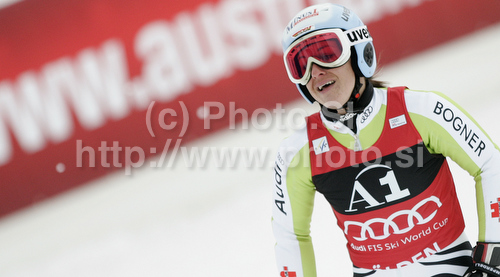 : Second placed Kathrin Hoelzl of Germany reacts in finish of second run of Women giant slalom race of Audi FIS alpine skiing World Cup in Soelden, Austria. First giant slalom race of Women Audi FIS Alpine skiing World Cup 2010-11, was held on Saturday, 23rd of October 2010, on Rettenbach glacier above Soelden, Austria.
