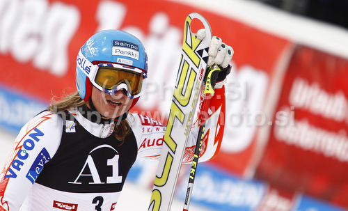 Soelden ,Austria - 23.10.2010 : Fourth placed Tanja Poutiainen of Finland reacts in finish of second run of Women giant slalom race of Audi FIS alpine skiing World Cup in Soelden, Austria. First giant slalom race of Women Audi FIS Alpine skiing World Cup 2010-11, was held on Saturday, 23rd of October 2010, on Rettenbach glacier above Soelden, Austria. Photo by: Primoz Jeroncic