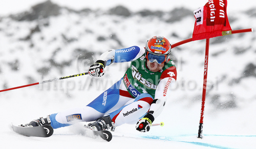 : Didier Cuche of Switzerland skiing in first run of Men giant slalom race of Audi FIS alpine skiing World Cup in Soelden, Austria. First giant slalom race of Men Audi FIS Alpine skiing World Cup 2010-11, was held on Sunday, 24th of October 2010, on Rettenbach glacier above Soelden, Austria.
