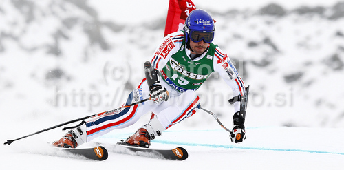: Jean-Baptiste Grange of France skiing in first run of Men giant slalom race of Audi FIS alpine skiing World Cup in Soelden, Austria. First giant slalom race of Men Audi FIS Alpine skiing World Cup 2010-11, was held on Sunday, 24th of October 2010, on Rettenbach glacier above Soelden, Austria.