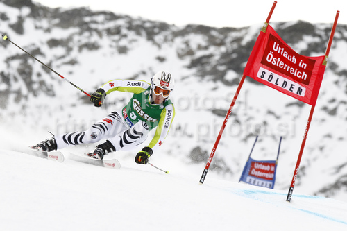 : Fritz Dopfer of Germany skiing in first run of Men giant slalom race of Audi FIS alpine skiing World Cup in Soelden, Austria. First giant slalom race of Men Audi FIS Alpine skiing World Cup 2010-11, was held on Sunday, 24th of October 2010, on Rettenbach glacier above Soelden, Austria.