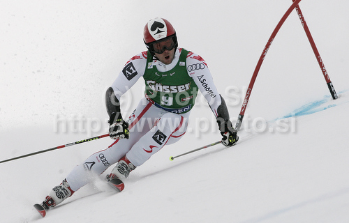 : Philipp Schoerghofer of Austria skiing in first run of Men giant slalom race of Audi FIS alpine skiing World Cup in Soelden, Austria. First giant slalom race of Men Audi FIS Alpine skiing World Cup 2010-11, was held on Sunday, 24th of October 2010, on Rettenbach glacier above Soelden, Austria.