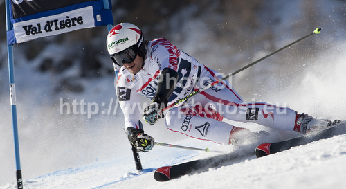 : SCHOERGHOFER Philipp (AUT) attacks a control gate whilst competing in the FIS alpine skiing world cup giant slalom race on the Bellevarde race piste Val dIsere.