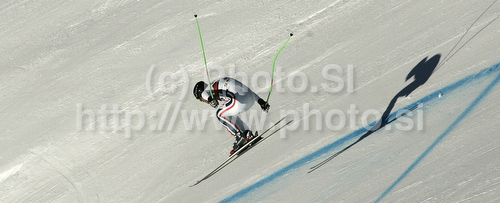 : Johan Clarey of France skiing in second training of Men downhill race of Audi FIS alpine skiing World Cup in Val Gardena, Italy. Second training of downhill race of Men Audi FIS Alpine skiing World Cup 2010-11, was held on Thursday, 16th of December 2010, on Saslong course in Val Gardena, Italy.