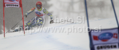: Andrej Jerman of Slovenia skiing in Men Super-G race of Audi FIS alpine skiing World Cup in Val Gardena, Italy. Super-G race of Men Audi FIS Alpine skiing World Cup 2010-11, was held on Friday, 17th of December 2010, on Saslong course in Val Gardena, Italy.