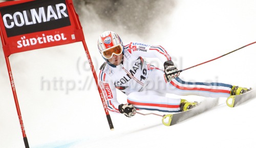: Thomas Fanara of France skiing in first run of Men giant slalom race of Audi FIS alpine skiing World Cup in Alta Badia, Italy. Giant slalom race of Men Audi FIS Alpine skiing World Cup 2010-11, was held on Sunday, 20th of December 2010, on Gran Risa course in Alta Badia, Italy.
