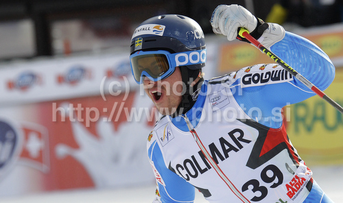 : Matts Olsson of Sweden reacts in finish of second run of Men giant slalom race of Audi FIS alpine skiing World Cup in Alta Badia, Italy. Giant slalom race of Men Audi FIS Alpine skiing World Cup 2010-11, was held on Sunday, 20th of December 2010, on Gran Risa course in Alta Badia, Italy.