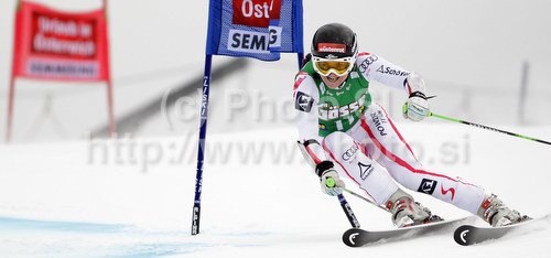: Elisabeth Goergl of Austria skiing in first run of Women giant slalom race of Audi FIS alpine skiing World Cup in Semmering, Austria. Giant slalom race of Women Audi FIS Alpine skiing World Cup 2010-11, was held on Tuesday, 28th of December 2010, in Semmering, Austria.