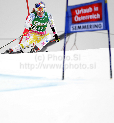 : Lindsey Vonn of USA skiing in first run of Women giant slalom race of Audi FIS alpine skiing World Cup in Semmering, Austria. Giant slalom race of Women Audi FIS Alpine skiing World Cup 2010-11, was held on Tuesday, 28th of December 2010, in Semmering, Austria.