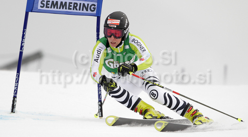 : Veronique Hronek of Germany skiing in first run of Women giant slalom race of Audi FIS alpine skiing World Cup in Semmering, Austria. Giant slalom race of Women Audi FIS Alpine skiing World Cup 2010-11, was held on Tuesday, 28th of December 2010, in Semmering, Austria.