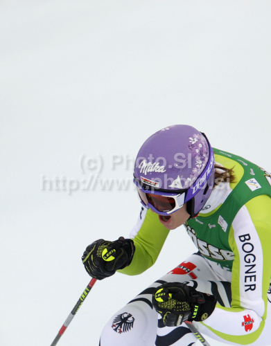 : Second placed Maria Riesch of Germany reacts in finish of second run of Women giant slalom race of Audi FIS alpine skiing World Cup in Semmering, Austria. Giant slalom race of Women Audi FIS Alpine skiing World Cup 2010-11, was held on Tuesday, 28th of December 2010, in Semmering, Austria.