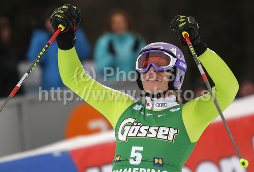 Semmering ,Austria - 28.12.2010 : Second placed Maria Riesch of Germany reacts in finish of second run of Women giant slalom race of Audi FIS alpine skiing World Cup in Semmering, Austria. Giant slalom race of Women Audi FIS Alpine skiing World Cup 2010-11, was held on Tuesday, 28th of December 2010, in Semmering, Austria. Photo by: Primoz Jeroncic