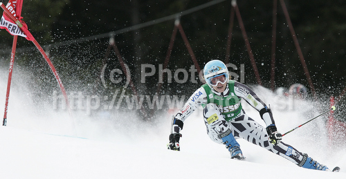 : Julia Mancuso of USA skiing in first run of Women giant slalom race of Audi FIS alpine skiing World Cup in Semmering, Austria. Giant slalom race of Women Audi FIS Alpine skiing World Cup 2010-11, was held on Tuesday, 28th of December 2010, in Semmering, Austria.