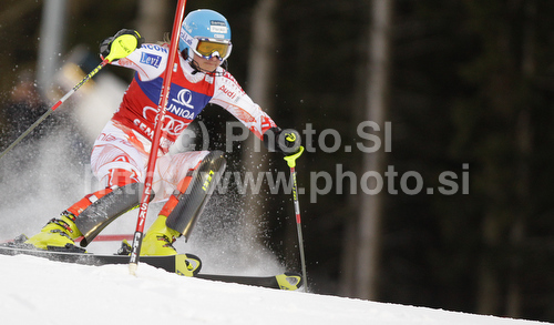 : Tanja Poutiainen of Finland skiing in first run of Women slalom race of Audi FIS alpine skiing World Cup in Semmering, Austria. Slalom race of Women Audi FIS Alpine skiing World Cup 2010-11, was held on Wednesday, 29th of December 2010, in Semmering, Austria.