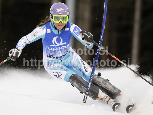 : Sarka Zahrobska of Czech skiing in first run of Women slalom race of Audi FIS alpine skiing World Cup in Semmering, Austria. Slalom race of Women Audi FIS Alpine skiing World Cup 2010-11, was held on Wednesday, 29th of December 2010, in Semmering, Austria.