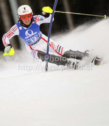 : Nastasia Noens of France skiing in first run of Women slalom race of Audi FIS alpine skiing World Cup in Semmering, Austria. Slalom race of Women Audi FIS Alpine skiing World Cup 2010-11, was held on Wednesday, 29th of December 2010, in Semmering, Austria.