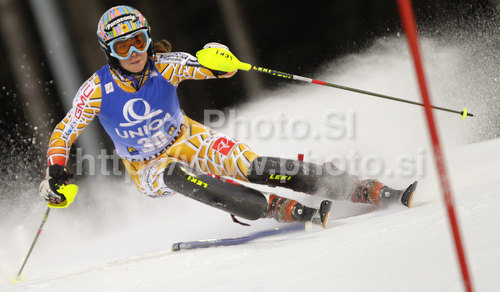 : Marie-Michele Gagnon of Canada skiing in first run of Women slalom race of Audi FIS alpine skiing World Cup in Semmering, Austria. Slalom race of Women Audi FIS Alpine skiing World Cup 2010-11, was held on Wednesday, 29th of December 2010, in Semmering, Austria.