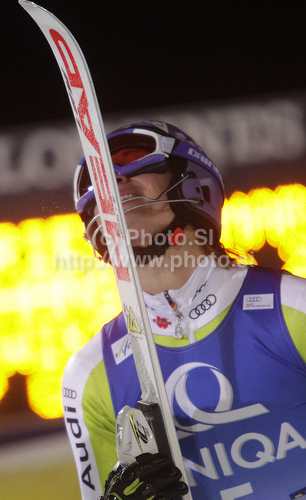 : Second placed Maria Riesch of Germany reacts in finish of second run of Women slalom race of Audi FIS alpine skiing World Cup in Semmering, Austria. Slalom race of Women Audi FIS Alpine skiing World Cup 2010-11, was held on Wednesday, 29th of December 2010, in Semmering, Austria.