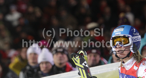 Semmering ,Austria - 29.12.2010 : Tanja Poutiainen of Finland reacts in finish of second run of Women slalom race of Audi FIS alpine skiing World Cup in Semmering, Austria. Slalom race of Women Audi FIS Alpine skiing World Cup 2010-11, was held on Wednesday, 29th of December 2010, in Semmering, Austria. Photo by: Primoz Jeroncic