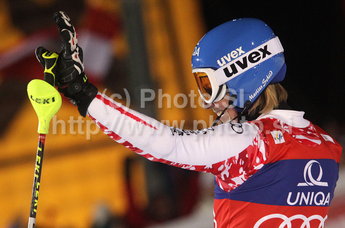 Semmering ,Austria - 29.12.2010 : Winner Marlies Schild of Austria reacts in finish of second run of Women slalom race of Audi FIS alpine skiing World Cup in Semmering, Austria. Slalom race of Women Audi FIS Alpine skiing World Cup 2010-11, was held on Wednesday, 29th of December 2010, in Semmering, Austria. Photo by: Primoz Jeroncic