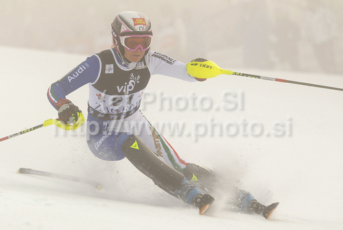Zagreb ,Croatia - 04.01.2011 : Manuela Moelgg of Italy skiing in first run of Women slalom race of Audi FIS alpine skiing World Cup in Zagreb, Croatia. Slalom race of Women Audi FIS Alpine skiing World Cup 2010-11, was held on Tuesday, 4th of January 2011, in Sljeme above Zagreb, Croatia. Photo by: Primoz Jeroncic