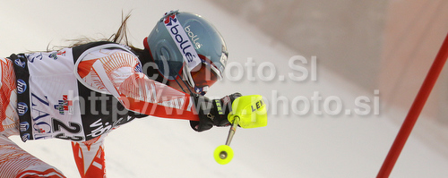 : Sanni Leinonen of Finland skiing in first run of Women slalom race of Audi FIS alpine skiing World Cup in Zagreb, Croatia. Slalom race of Women Audi FIS Alpine skiing World Cup 2010-11, was held on Tuesday, 4th of January 2011, in Sljeme above Zagreb, Croatia.