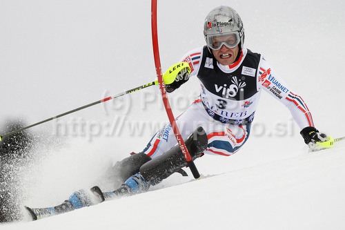 Zagreb ,Croatia - 06.01.2011 : Julien Lizeroux of France skiing in first run of Men slalom race of Audi FIS alpine skiing World Cup in Zagreb, Croatia. Slalom race of Men Audi FIS Alpine skiing World Cup 2010-11, was held on Thursday, 6th of January 2011, in Sljeme above Zagreb, Croatia. Photo by: Primoz Jeroncic