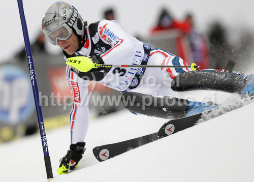 Zagreb ,Croatia - 06.01.2011 : Julien Lizeroux of France skiing in first run of Men slalom race of Audi FIS alpine skiing World Cup in Zagreb, Croatia. Slalom race of Men Audi FIS Alpine skiing World Cup 2010-11, was held on Thursday, 6th of January 2011, in Sljeme above Zagreb, Croatia. Photo by: Primoz Jeroncic