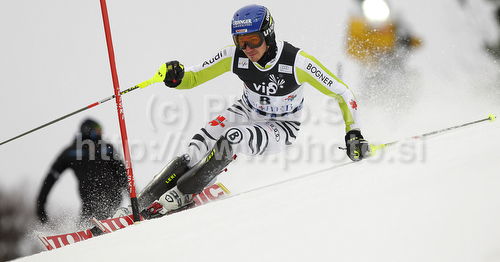 Zagreb ,Croatia - 06.01.2011 : Felix Neureuther of Germany skiing in first run of Men slalom race of Audi FIS alpine skiing World Cup in Zagreb, Croatia. Slalom race of Men Audi FIS Alpine skiing World Cup 2010-11, was held on Thursday, 6th of January 2011, in Sljeme above Zagreb, Croatia. Photo by: Primoz Jeroncic